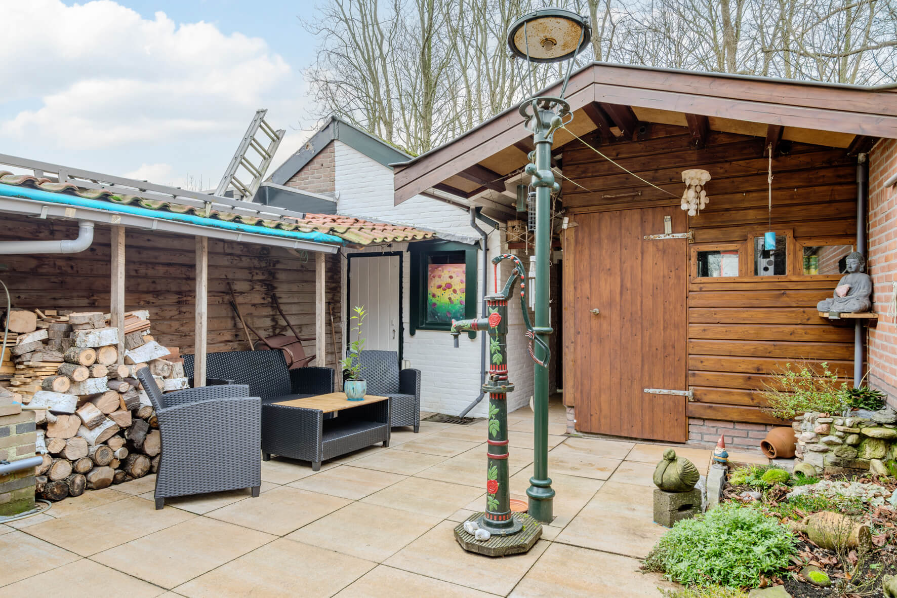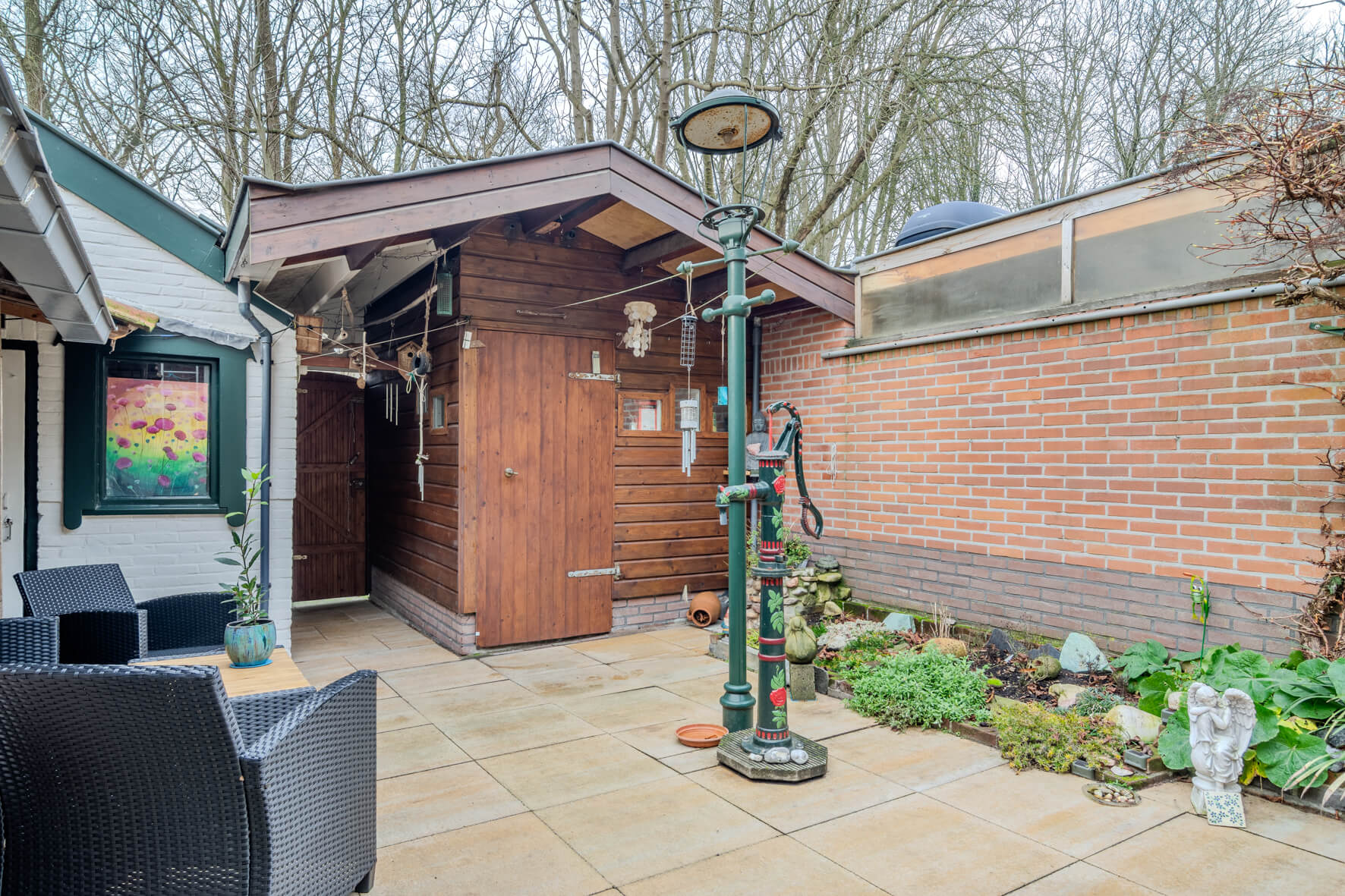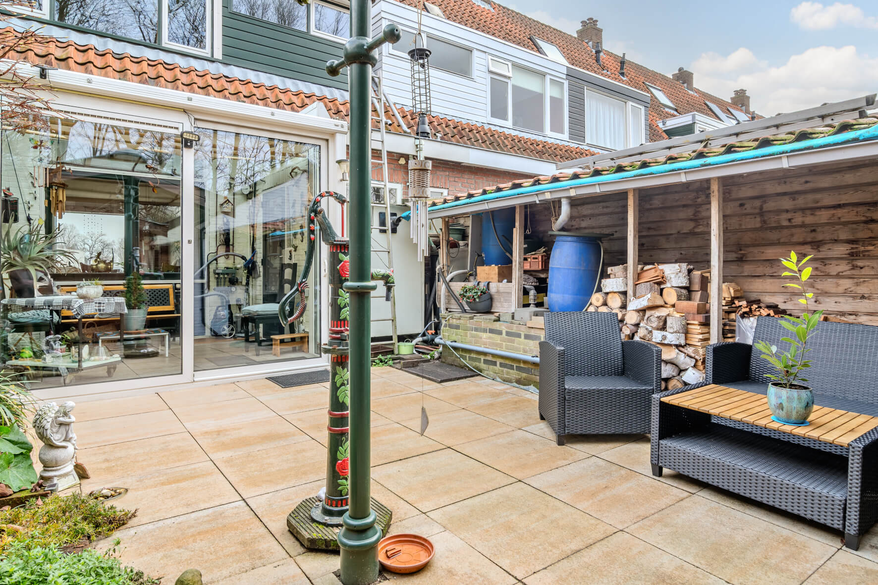 De zonnige tuin met een ligging op het zuidwesten tuin biedt naast de serre twee bergingen, een achterom en veel privacy. Aan de voorzijde ligt naast de voortuin een strook gemeentegroen, die door bewoners mag worden gebruikt en onderhouden. Voor de deur is vrij en ruim parkeergelegenheid aanwezig.