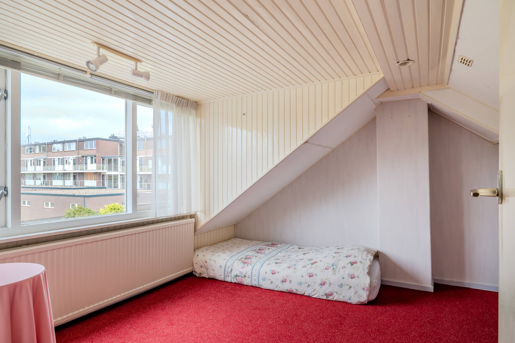 De tweede verdieping is verrassend ruim dankzij de dakkapel. Hier vind je een grote voorzolder, veel opbergruimte en een slaapkamer met een nokhoogte van net geen 2 meter – uitstekend geschikt als extra slaap- of werkkamer. Deze ruimte is circa 12 m2 groot en meegeteld in het woonoppervlak.