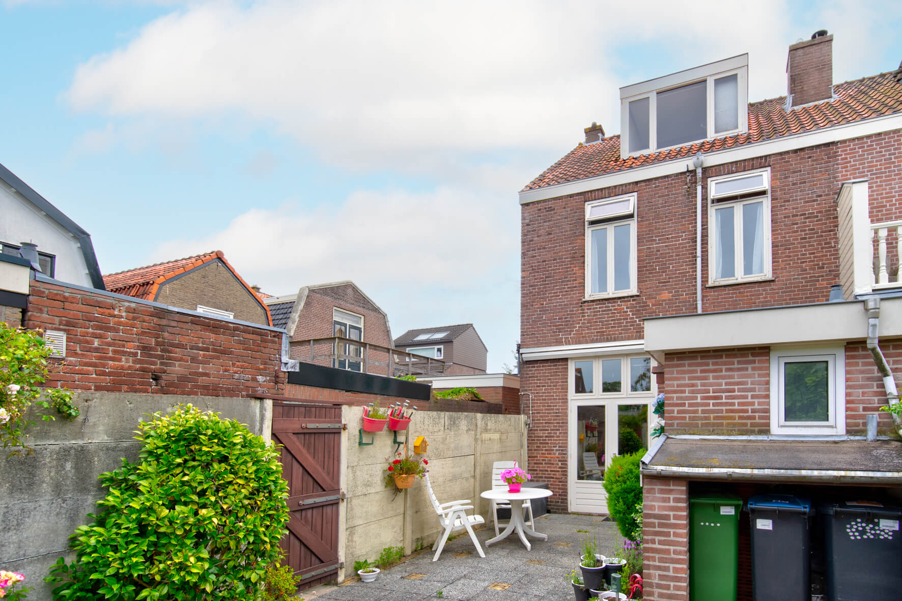 Vanuit de woonkamer middels de openslaande deuren of de bijkeuken bereikt u de tuin met een ligging op het westen. Naast de woning ligt een steeg waar meerdere buren eigenaar van zijn.